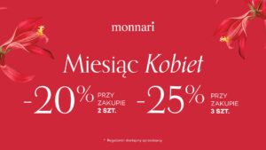 Z okazji Miesiąca Kobiet zapraszamy do salonu Monnari na wyjątkową promocję!🌸 Przy zakupie:• 2 produktów – otrzymasz 20% [...]